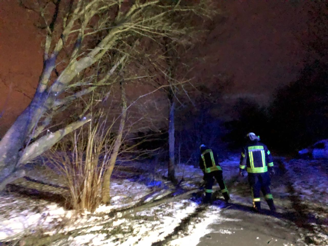 Wir sperrten die Straße und fällten den Baum. Anschließend reinigten