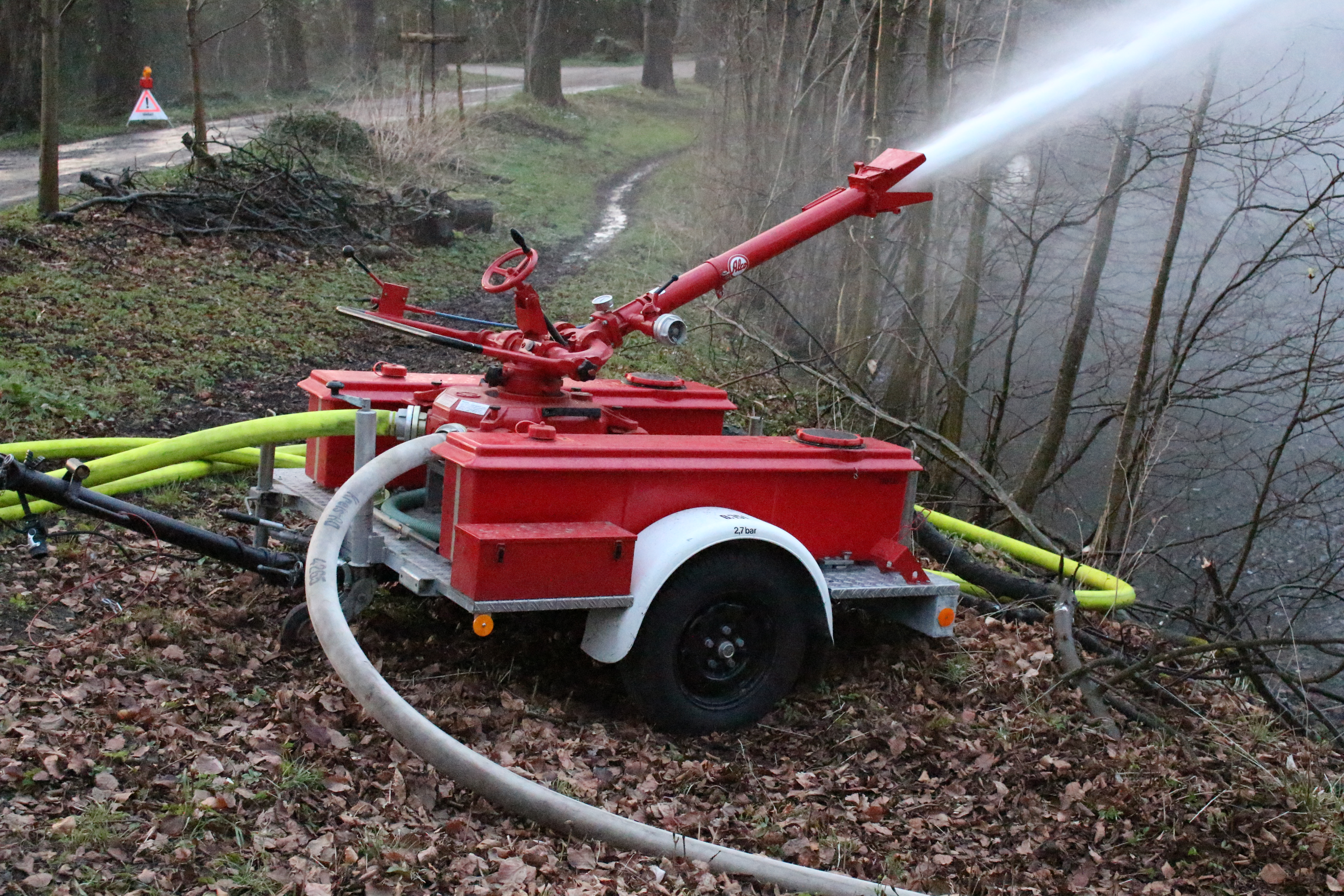 Der Anhänger mit Schaum-Wasserwerfer SWA (DIN14521) dient zum Transport eines Schaum-Wasserwerfers und von zwei abnehmbaren Behältern für insgesamt 220 l Schaummittel. Der Betrieb des Schaum-Wasserwerfers ist sowohl vom Anhänger als auch abgesetzt möglich.