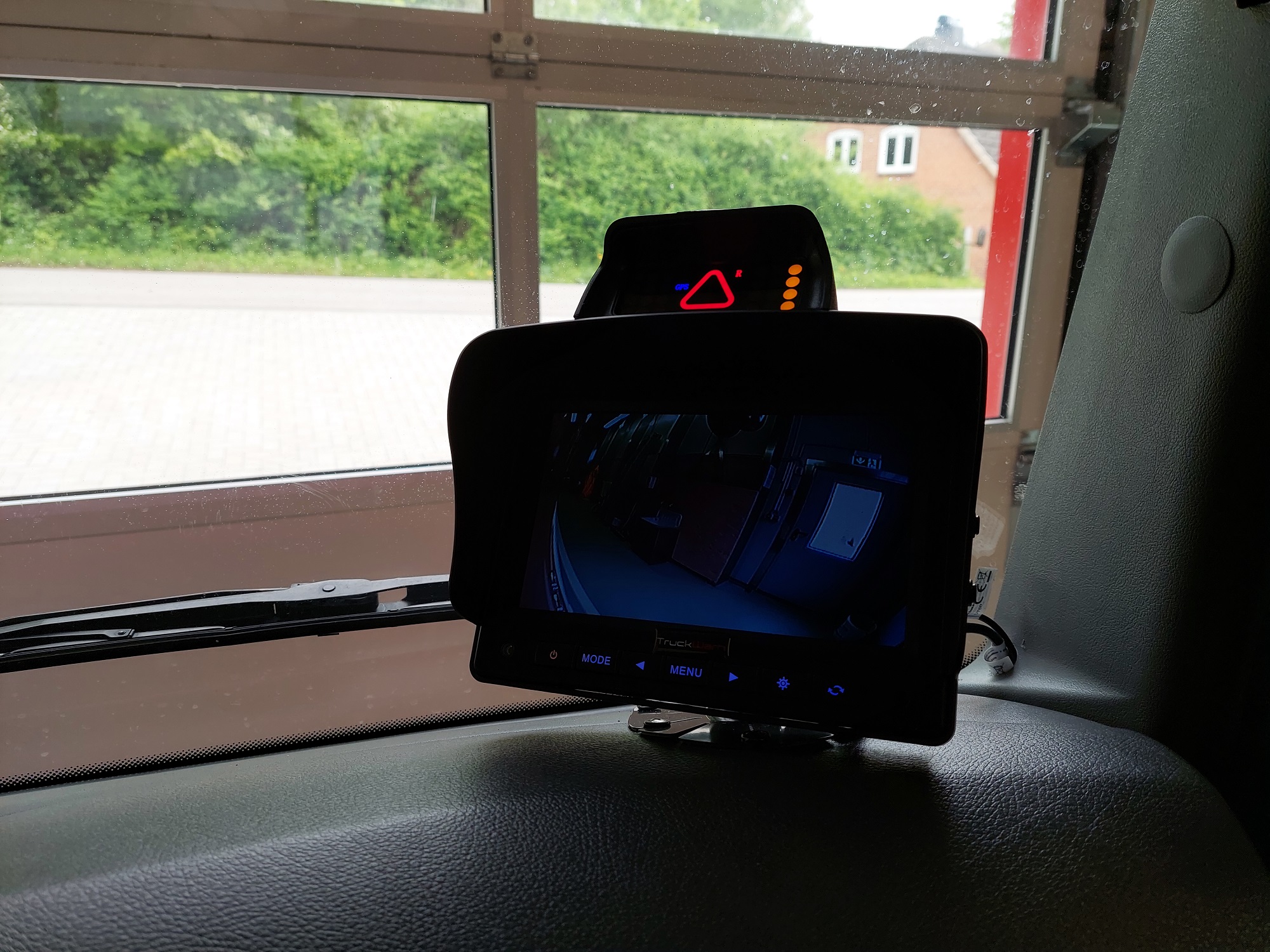 Dass der Vorgang des rechts Abbiegens mit einem LKW viele Risiken birgt, ist kein Geheimnis. Immer wieder kommt es zu Unfällen, teilweise auch tödlich, weil Radfahrer oder Fußgänger beim rechts abbiegen übersehen werden und dann vom LKW überrollt werden. Ab 2022 sollen für bereits angemeldete Fahrzeuge sogenannte Abbiegeassistenten zur Pflicht werden. Aus diesem Grund hat unser TSF-W bereits einen solchen erhalten. Durch eine Weitwinkelkamera, welche vorne rechts am Fahrzeug montiert wurde, wird der tote Winkel abgedeckt und per Video auf einen Bildschirm im Innenraum des Fahrzeuges übertragen. Dazu wird der Bereich auch noch über 4 Sensoren überwacht. Hindernisse im toten Winkel, werden dann somit über optische und akustische Signale im Führerhaus angezeigt.