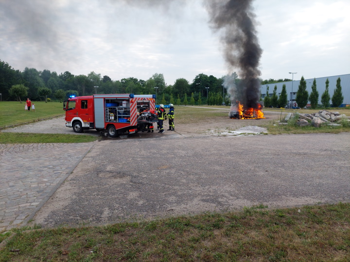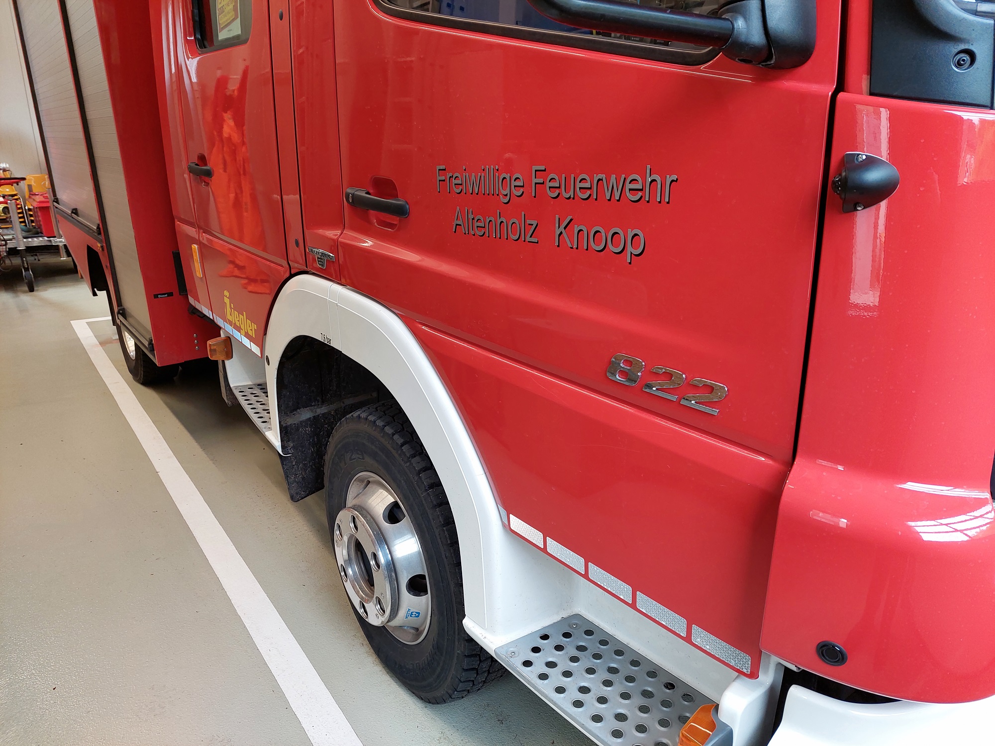 Vor kurzem wurde unser TSF-W durch eine Werbefirma mit einer reflektierenden Folie versehen. Neben einer klaren Konturmarkierung an den Fahrzeugseiten, dürfen wir uns auch über eine Heckwarnbeklebeung freuen. Durch eine solche Beklebung wird natürlich die Sichtbarkeit und somit auch die Sicherheit für unsere Einsatzkräfte, vor allem bei Dämmerung und in den Nachtstunden, deutlich erhöht.