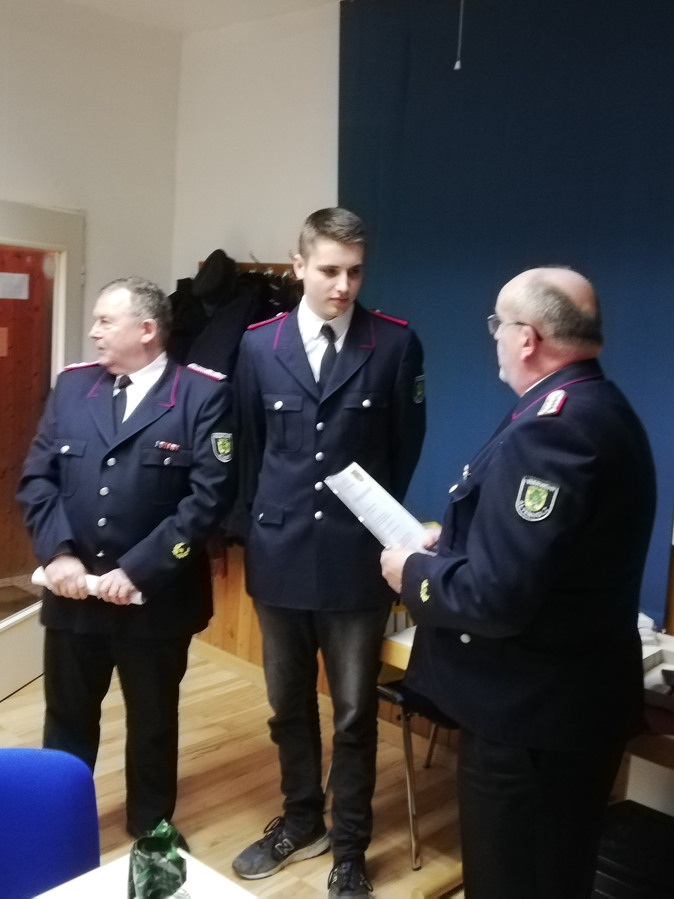 Fiete Mischke wurde in die Wehr aufgenommen und zum Feuerwehrmann befördert.