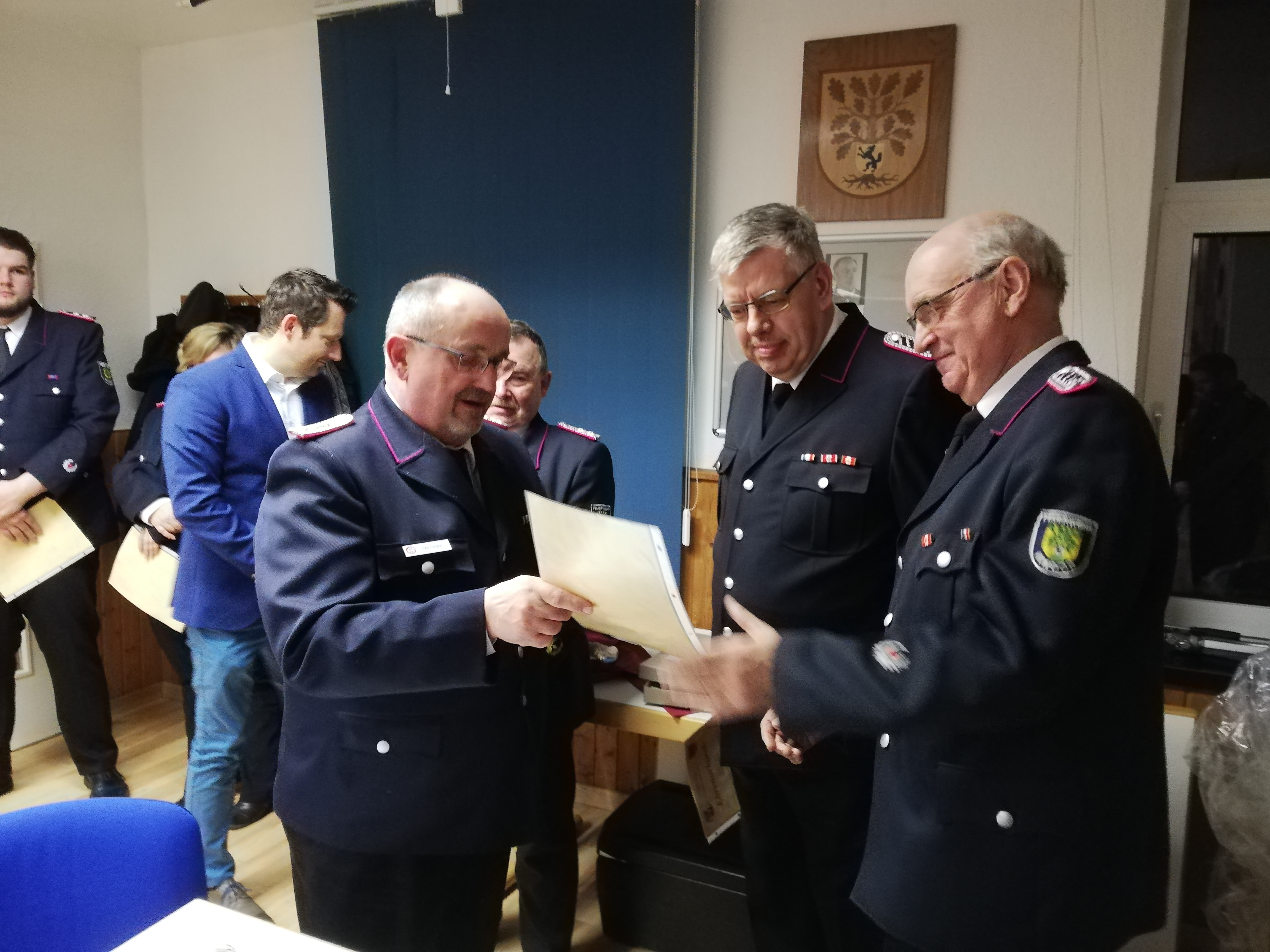 v.l.: Gemeindewehrführer Uwe Clausen, Norbert Lebang, Georg Struck